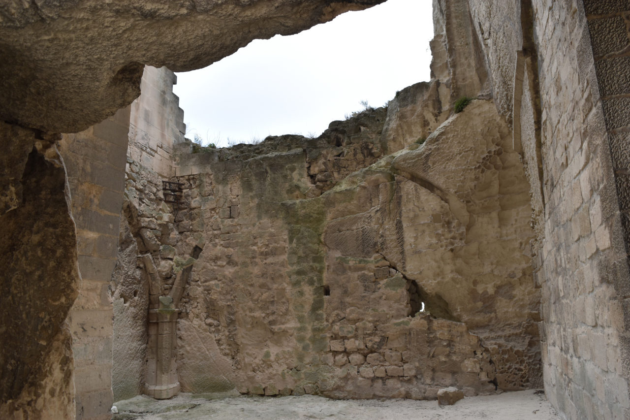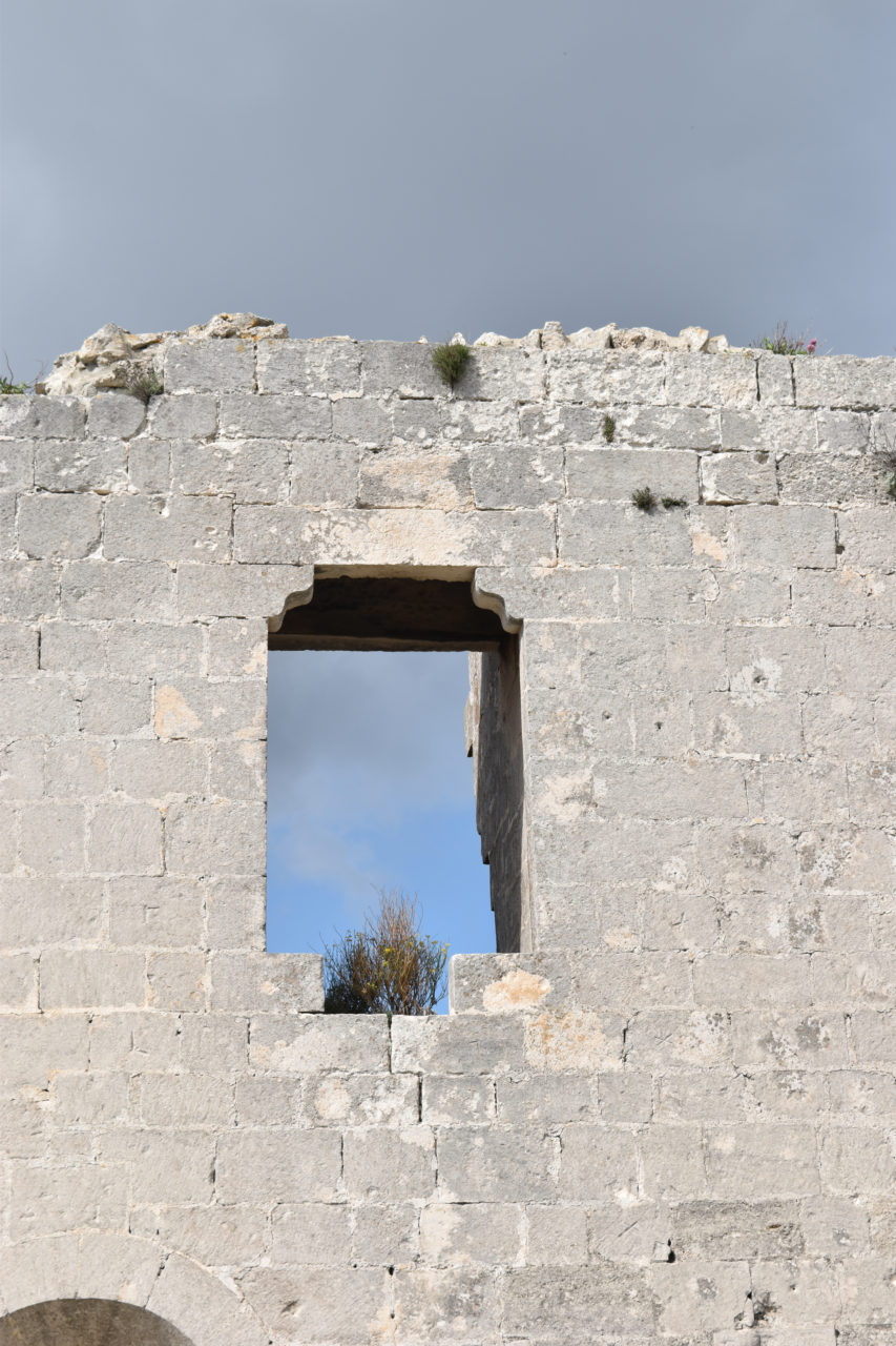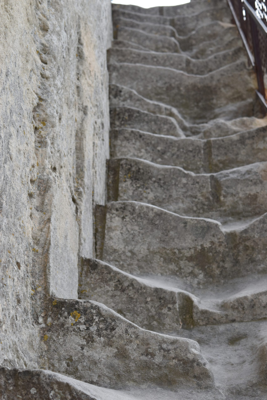 This corner column, had a wonderful patina that was not lichen but perhaps from rain water and some kind of algae or just a chemical reaction to the calcium and tannins?  Just this detail made me think about how much work when into giving this castle a unique beauty to bring comfort and the organic curves of nature.  Speaking of organic, I see there is light peeking through this hole next to me.