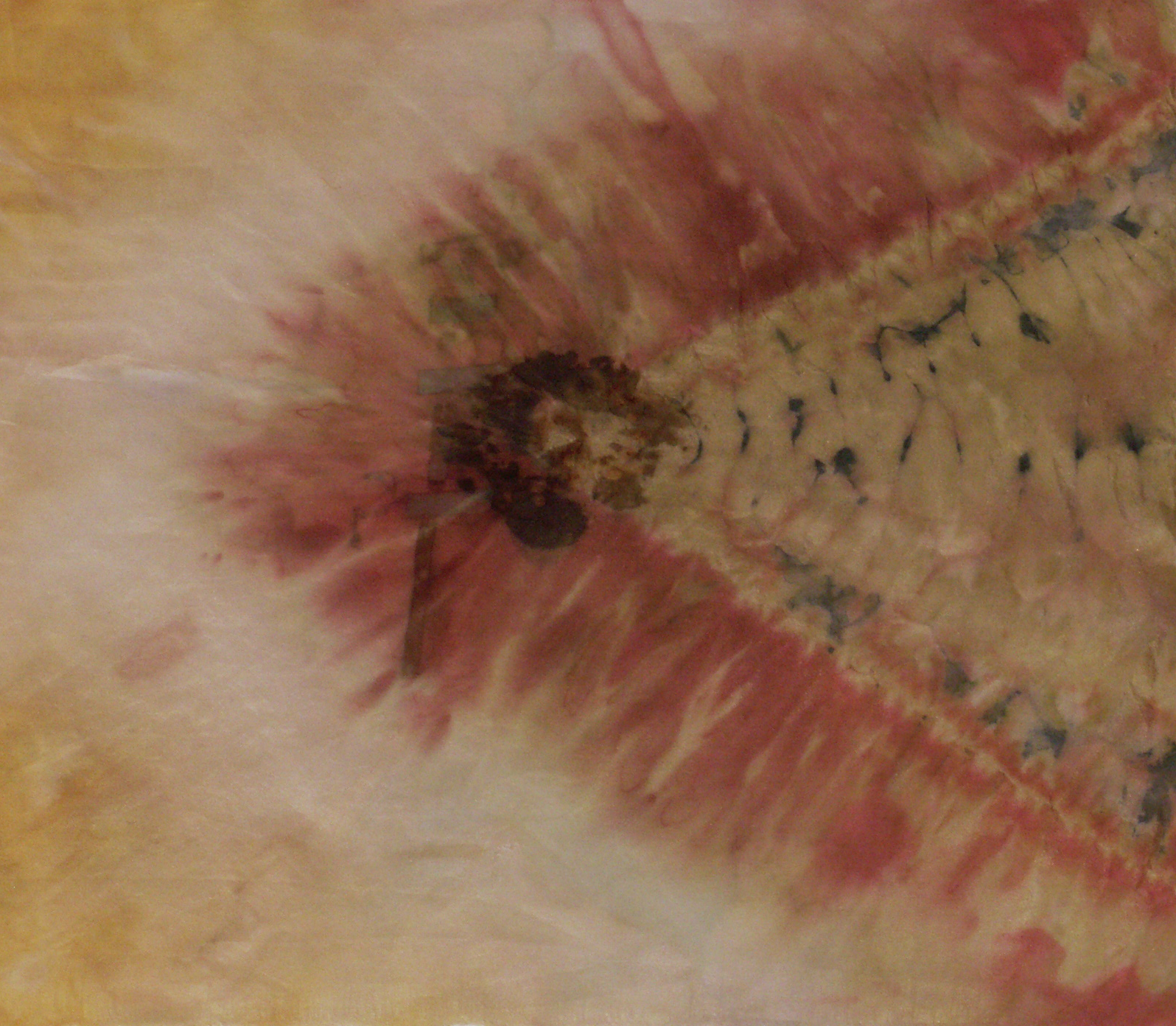 The All Seeing Eye- silk, rust, shibori, natural dyes, 25×47″